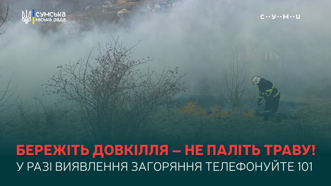 З настанням теплої та сухої погоди в Сумській громаді зростає ризик виникнення пожеж на відкритих територіях. Мешканців закликають суворо дотримуватися правил пожежної безпеки, не спалювати суху рослинність та пам’ятати про відповідальність за такі дії, адже навіть невелике займання може призвести до масштабних наслідків для довкілля і людей.