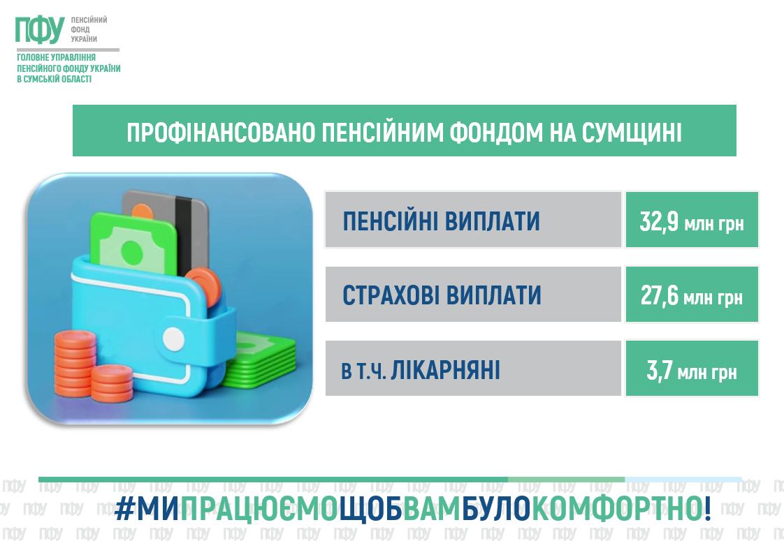 «Станом на 03 березня 2026 року профінансовано: 32,9 млн грн – на пенсійні виплати», — зазначають у Головному управлінні ПФУ в Сумській області.
