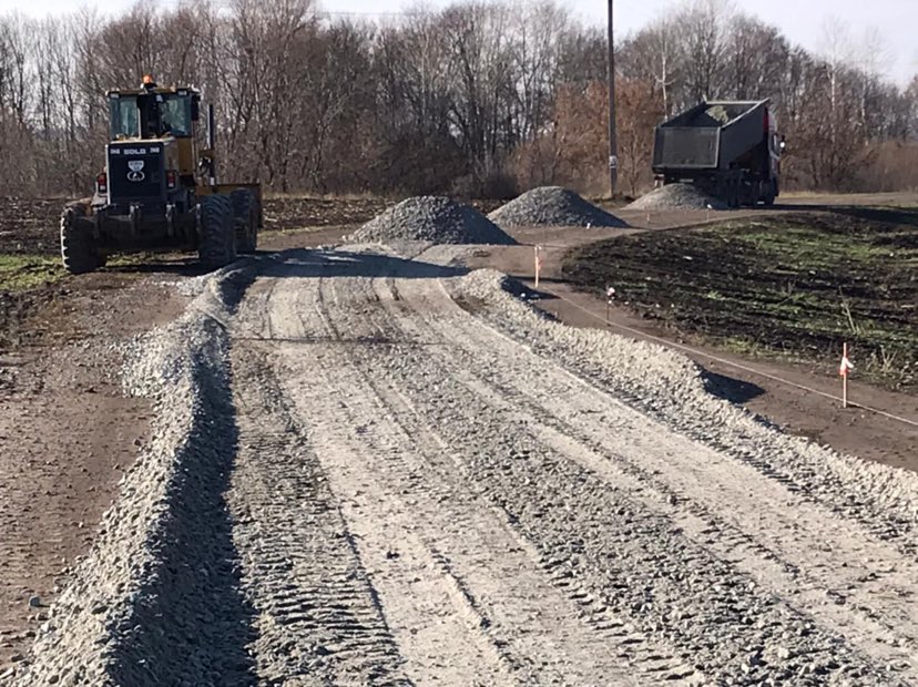 Зокрема, працівники «АМК РЕМ-БУД» завершили усі підготовчі роботи, завезли дорожню техніку та вже влаштовують на ввіреній для ремонту дорозі щебенево-піщану суміш.