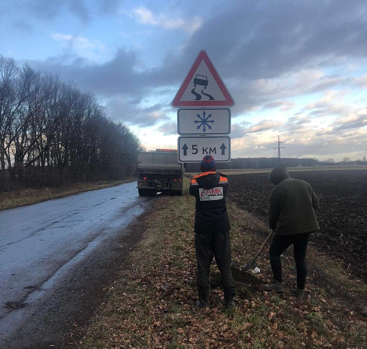 Для безпечного проїзду дорогами області та попередження на них ДТП к зимовий період фахівці «АМК РЕМ-БУД» встановили вже майже сотню спеціальних дорожніх знаків.