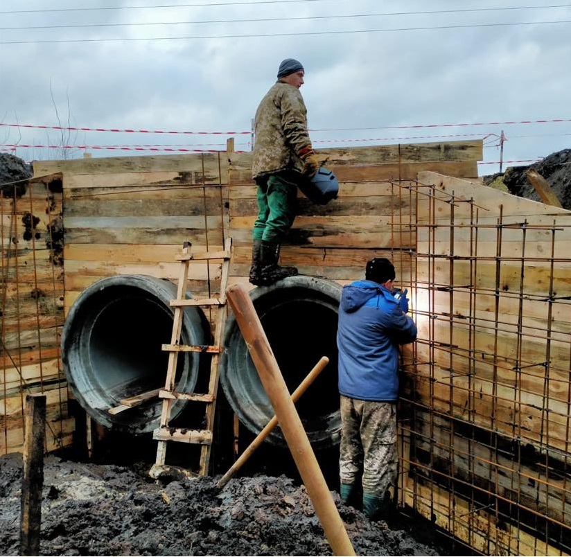Так, працівники «АМК РЕМ-БУД» оперативно виконали підготовчі роботи і вже зібрали та влаштували на дорозі у Нижній Сироватці дві 12-метрові труби, а у Стрільниках – одну 9-метрову. Для надійності фахівці підприємства зафіксували їх за допомогою геомембрани і геотекстилю. Разом з цим працівники компанії влаштують на штучних спорудах щебенево-піщану суміш і зацементують оголовки труб.