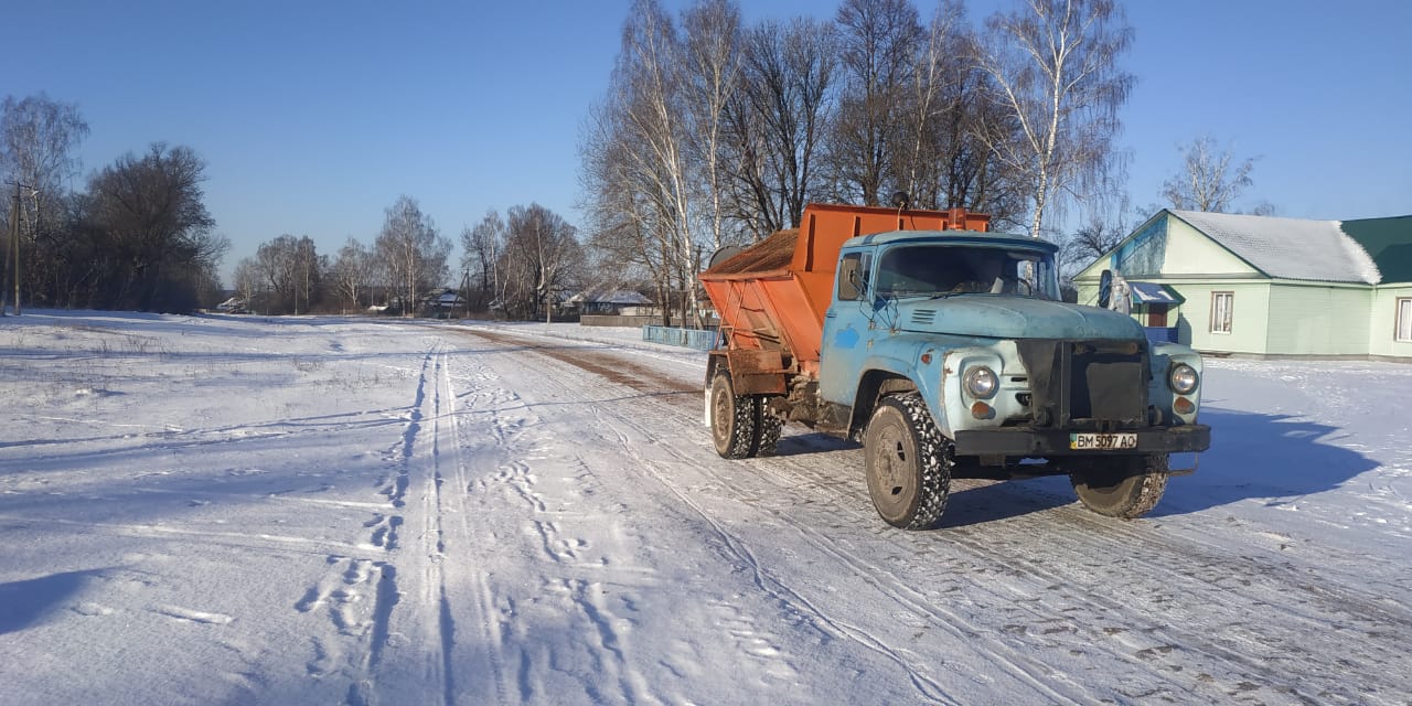 Зокрема, техніка «АМК РЕМ-БУД» посипали протиожеледними матеріалами 252 км доріг, зокрема, на Білопільщині (С190127, С190132, С190143, С190126, С190135, О190104, О190102), Путивльщині (С191213, С191228, С191229, О191206, С191202, О191201, О191204), Сумському районі (О191506, С191551, С191504, С191503, С191519, С191520, О191514, С191539, С191544, О191510, О191610, С191507, С191506, С191559), Роменщині (С191341, С191324, С191316, С191327), Тростянеччині (О191603, О191607, О191605), Охтирщині (О191111, О191109), Великописарівщині (О192302, О190305, С190307), Кролевеччині, Ямпільщині та у Краснопіллі. Загалом для ліквідації слизькості дорожнього полотна працівники «АМК РЕМ-БУД» використали 295 тонн суміші.